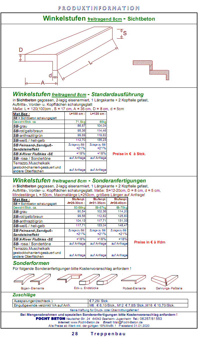 Winkelstufe freitragende Sichtbeton Sandstrahleffekt Feinsandguss Preisliste