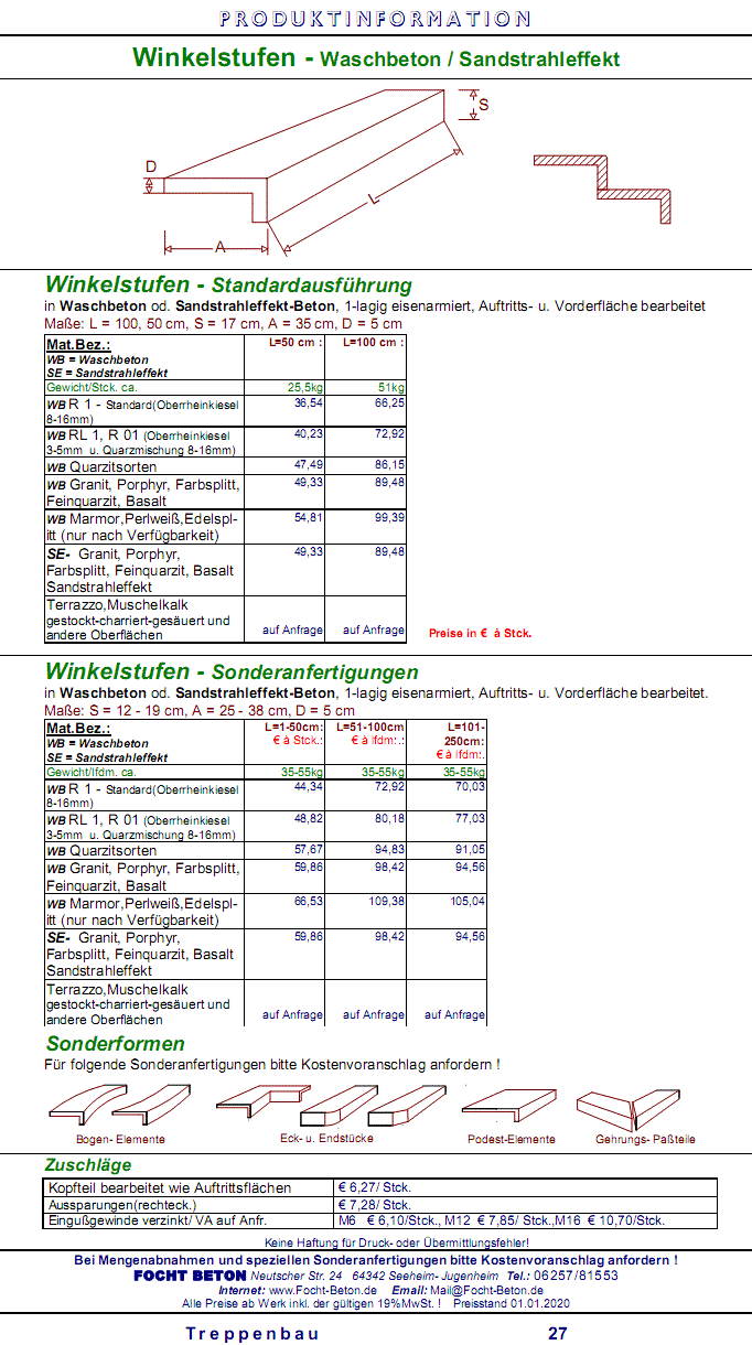 Winkelstufe Waschbeton / Sandstrahleffekt Maßanfertigung Preise /Basalt,Porphyr,Granit